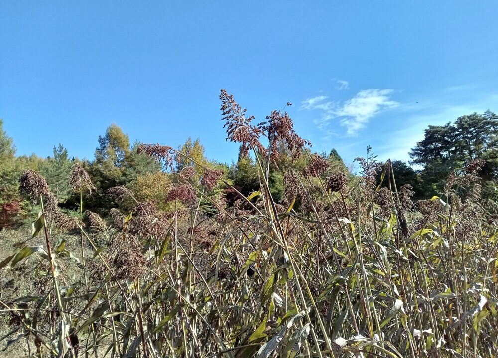 収穫の季節も終盤になり、今回はたかきび(ソルガム)もち種の刈り取りを行いました。機械で刈り取ることができないため手刈りです。